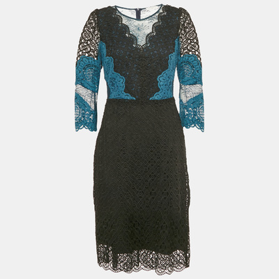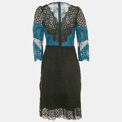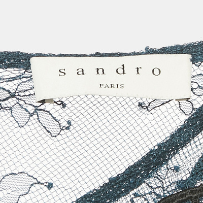 Sandro Teal/Black Lace Midi Dress L 1228010 (чёрный, lpn31045597)