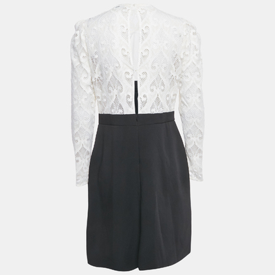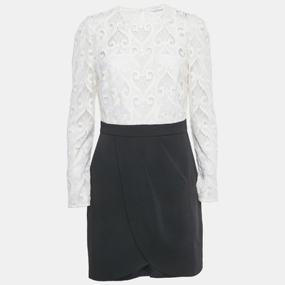 Sandro White/Black Lace Camelia Mini Dress L 1227886 (белый, lpn31045600)