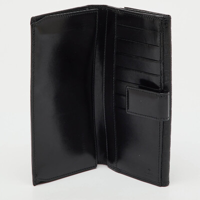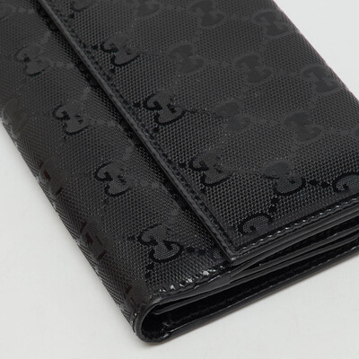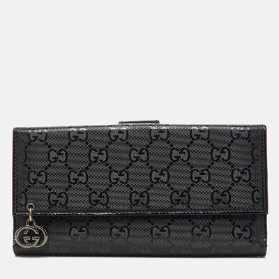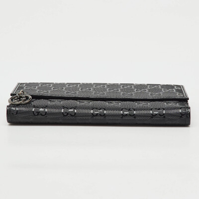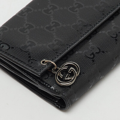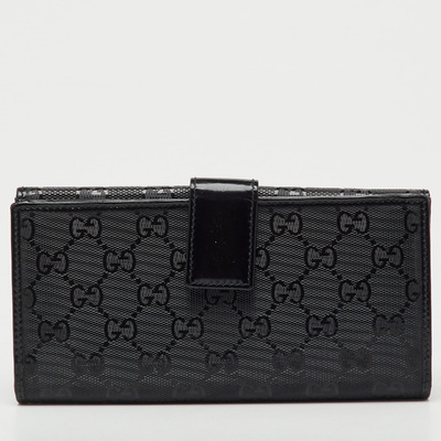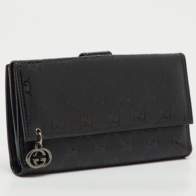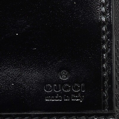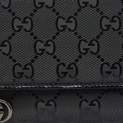 This Gucci wallet combines durable GG Imprime canvas with smooth black leather trims for a modern finish. Its bifold layout offers ample card and bill slots without bulk. A smart, versatile essential for daily use.