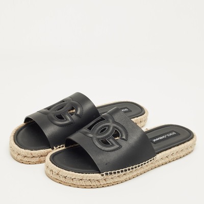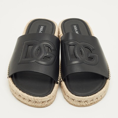 A nod to Italian summers, these Dolce and Gabbana slides fuse classic espadrille craftsmanship with smooth black leather. Finished with woven jute midsoles, they balance ease with refinement. Ideal for resort getaways or relaxed weekend edits that still speak the language of luxury.