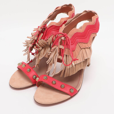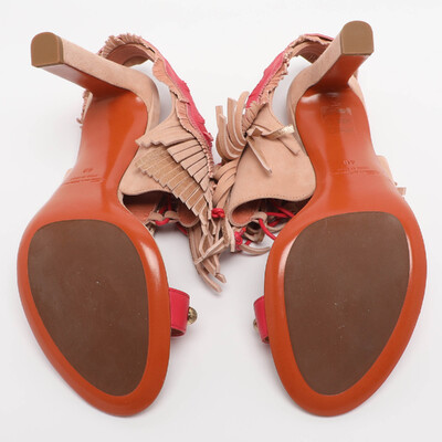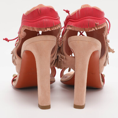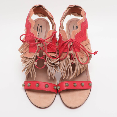 Santoni Multicolor Suede Fringe Lace Up Ankle Wrap Sandals 40 1226134 (lpn31045622)