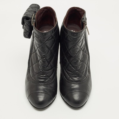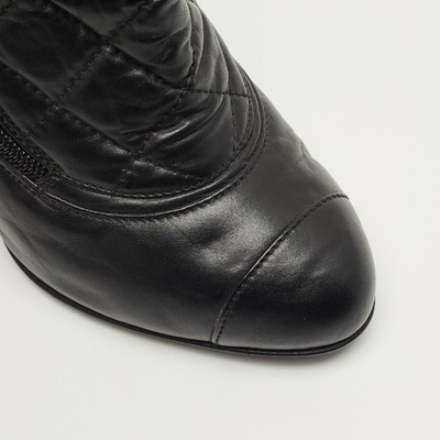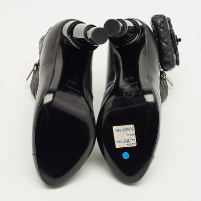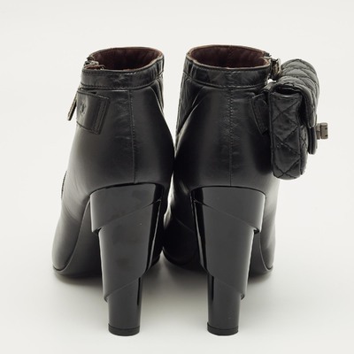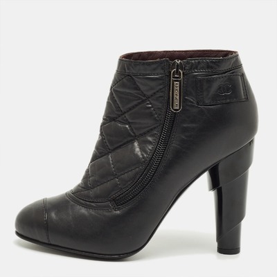 Chanel Black Leather CC Cap Toe Ankle Length Boots Size 36.5 1227532 (чёрный, lpn31045632)