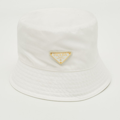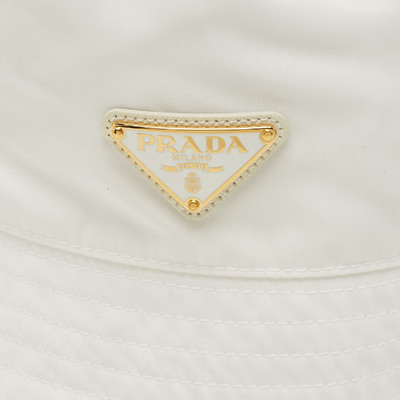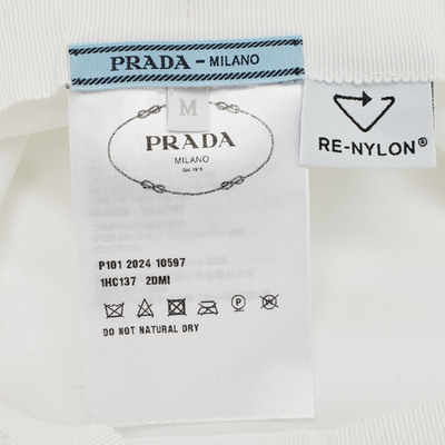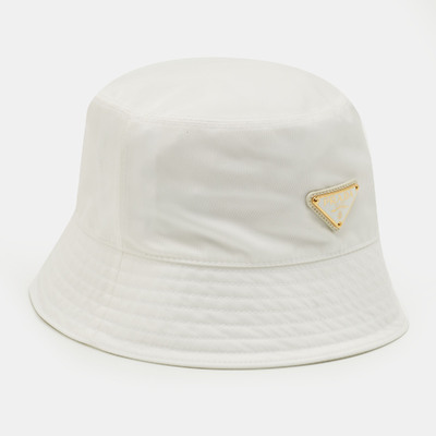 Prada redefines casual elegance through this white Re Nylon bucket hat. Detailed with the signature triangular enamel logo plaque, it channels the house’s minimalist DNA with a contemporary edge. Lightweight and effortlessly refined, it’s a go to accessory for city strolls or coastal getaways, exuding quiet luxury in every stitch.