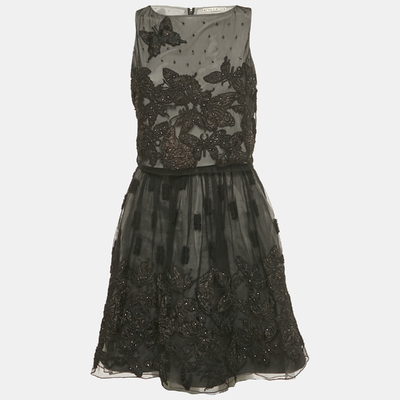Alice + Olivia Black Embroidered Embellished Mesh Top & Skirt Set S 1224835 (чёрный, lpn31045662)