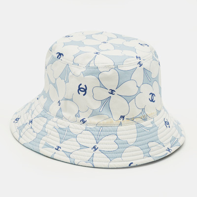 Chanel Light Blue/Printed Denim & Cotton Reversible Bucket Hat (56cm) 1225494 (голубой, lpn31045674)