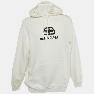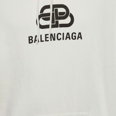 Balenciaga White Logo Print Cotton Hoodie XS 1224580 (белый, lpn31045685)