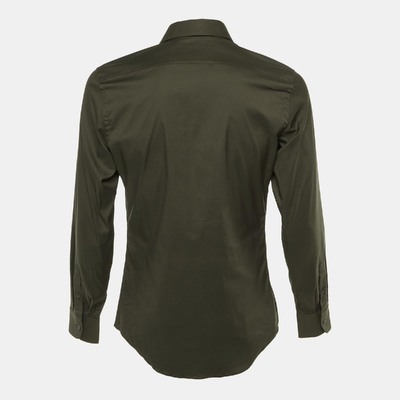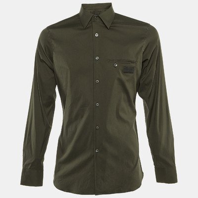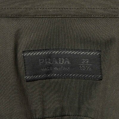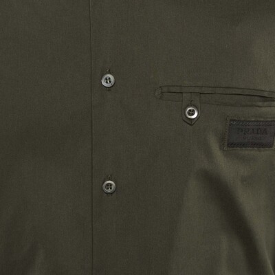 Prada’s olive green shirt redefines utility with sophistication. Cut in a cotton blend, it features subtle logo detailing that nods to the house’s minimalist heritage. Perfect for layering or standalone styling, this full sleeve piece merges precision tailoring with Prada’s contemporary industrial aesthetic.