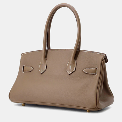 Hermes elevates timeless sophistication with the Shoulder Birkin in Etoupe Evercolor. Expertly crafted and impeccably structured, this 29 cm masterpiece exudes refined luxury, perfect for the discerning connoisseur of classic elegance.