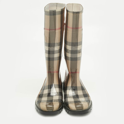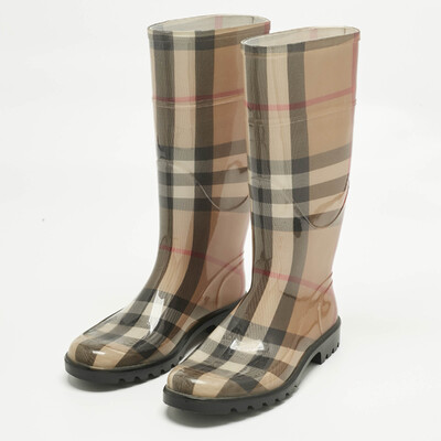 Burberry brings its iconic check to functional form. These PVC rain boots turn grey days into something worth dressing for, blending nostalgia with practicality.