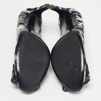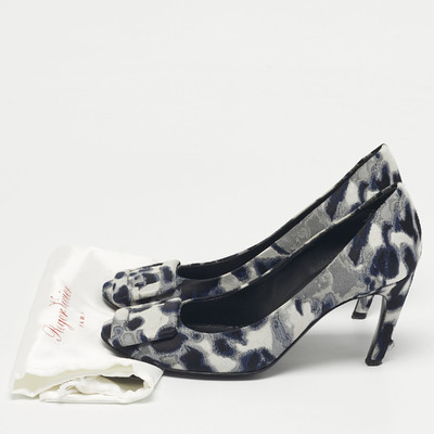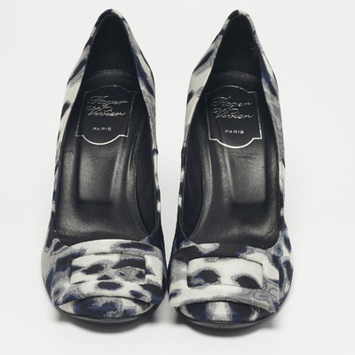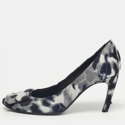 Roger Vivier Grey/Navy Blue Canvas Belle Vivier Trompette Pumps Size 35.5 1228254 (lpn31045718)