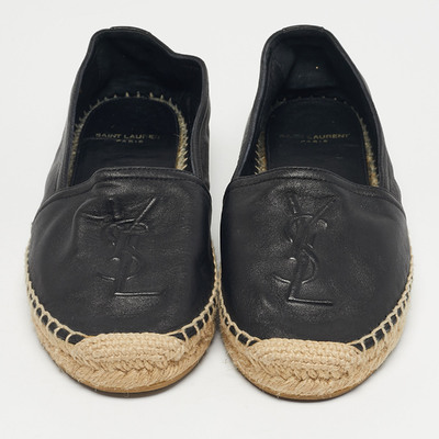 Saint Laurent Black Leather Logo Espadrille Flats Size 35 1228221 Saint Laurent (чёрный, lpn31045720)