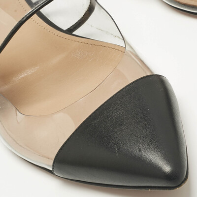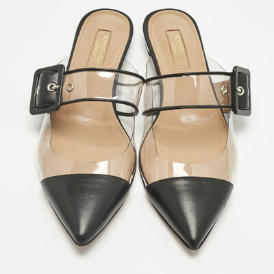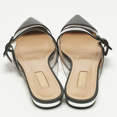 Aquazzura Black/Transparent Leather and PVC Optic Buckle Mules Size 37.5 1228150 (чёрный, lpn31045727)