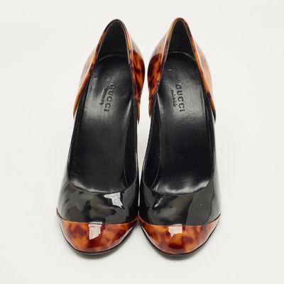 Gucci Brown/Black Patent Leather Block Heel Pumps Size 36 1227804 - 1