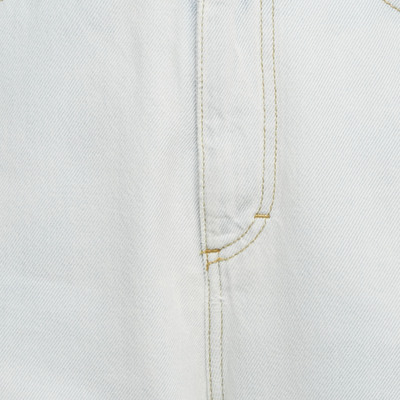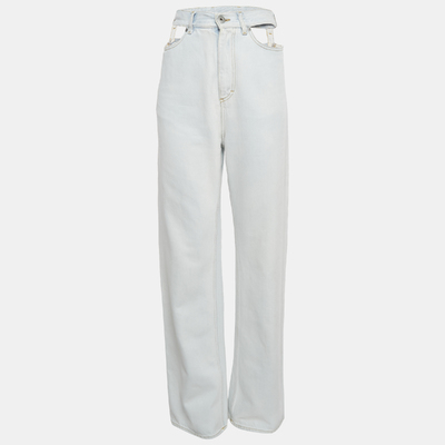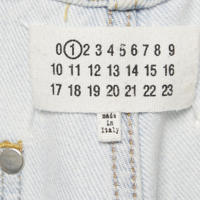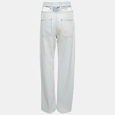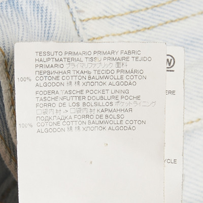 Maison Martin Margiela transforms classic denim through a conceptual lens. These light blue jeans feature avant garde cut outs and raw edge detailing that redefine structure and silhouette. A signature exploration of deconstruction, they encapsulate the maison’s intellectual approach to everyday fashion.