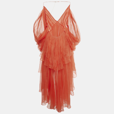 Zimmermann Red Silk Organza Natura High-Low Tiered Dress M 1224445 (красный, lpn31045769)