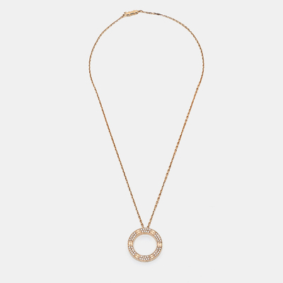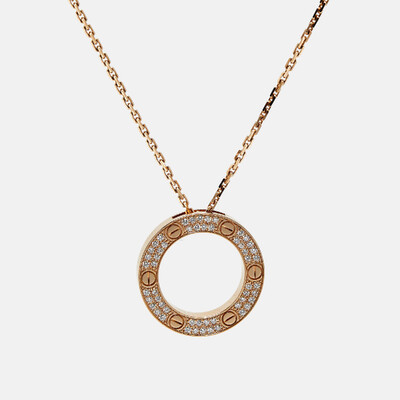The iconic Love motif circles the neckline in rose gold, its surface traced with diamond accents that shimmer softly with movement. Minimal yet instantly recognizable, it carries Cartier’s spirit of permanence while being a piece that feels as natural with a white shirt in the morning as it does with an evening dress after sunset.