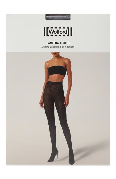 Колготки Panthera с жаккардовым леопардовым мотивом выполнили из эластичной нейлоновой микрофибры. Модель с плоскими швами дополнили широким поясом в рубчик.