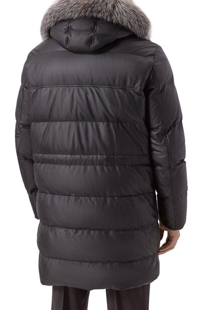 Кожаный пуховик с отделкой из песца Stefano Ricci mdj5300430/5901 (чёрный, lpn31048324)