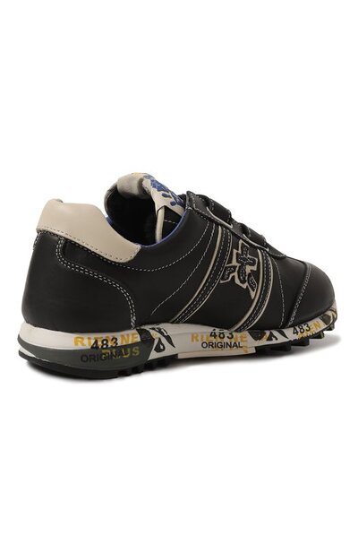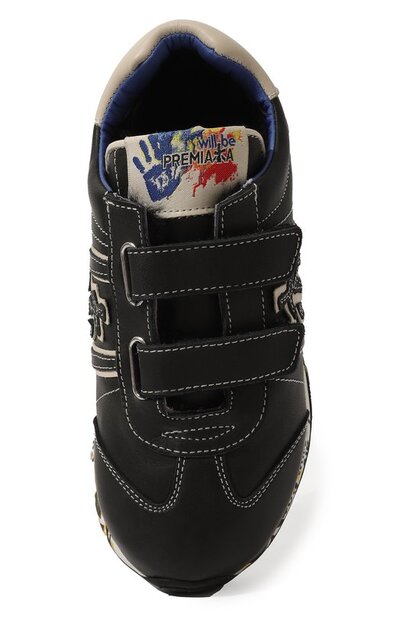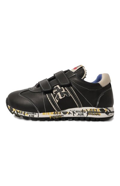 Черные кроссовки адаптировали для прогулок в прохладную погоду. Модель выполнили из мягкой эластичной кожи, а внутреннюю отделку — из густой овчины. Традиционную шнуровку заменили двумя ремешками с лентами велькро, чтобы обувь было удобнее надевать и снимать. Пару с фирменными печатями и штампами на широкой подошве декорировали объемными аппликациями в виде иероглифов.