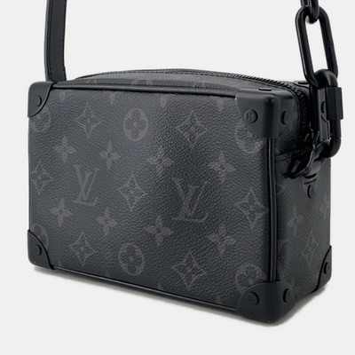 The Mini Soft Trunk in Monogram Eclipse canvas brings a structured shape in a compact form. This black crossbody bag features matte black hardware and leather trim, with a boxy profile inspired by vintage Louis Vuitton trunks. A great pick for carrying small items with a bold look.