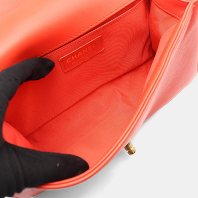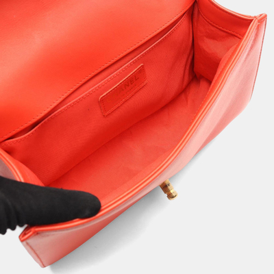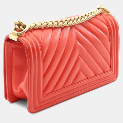 Chanel Boy Chanel Chevron V-Stitch Shoulder Bag In Lambskin Leather Red 1228815 (красный, lpn31050964)