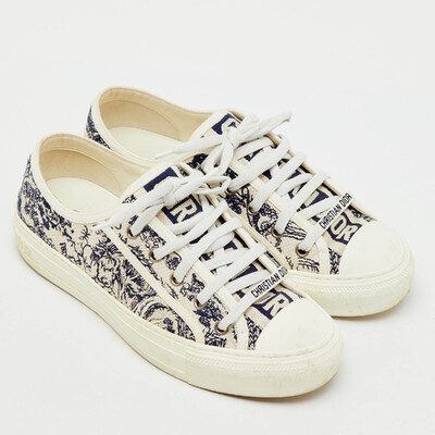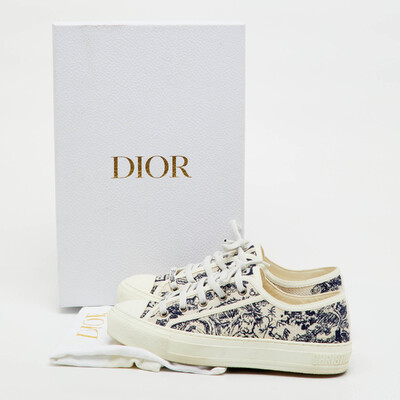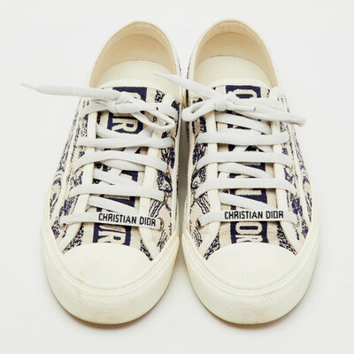 Dior Navy Blue/White Embroidered Canvas Walk'n'Dior Low Top Sneakers Size 37.5 1228746 (lpn31050972)
