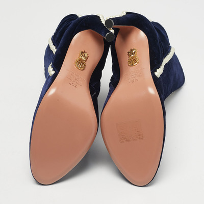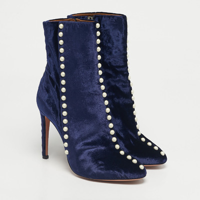 Aquazzura Navy Blue Velvet Follie Pearls Ankle Boots Size 36.5 1228657 (lpn31051047)