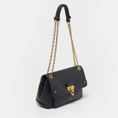 This Louis Vuitton Vavin PM bag combines refined craftsmanship with modern flair. Made from embossed Monogram Empreinte leather, it features a chic chain handle and polished hardware. Compact yet roomy, it’s a statement piece for both daywear and evening elegance.