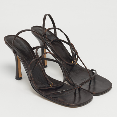 Bottega Veneta Brown Leather Stretch Ankle Strap Sandals Size 41 1227885 (коричневый, lpn31051061)