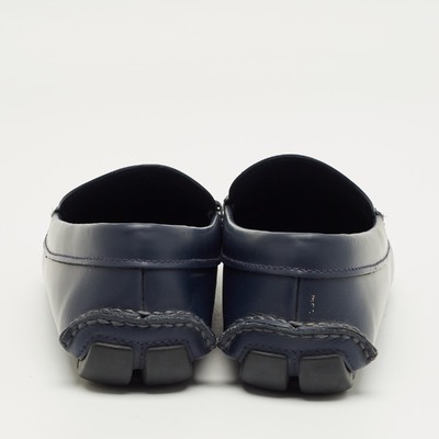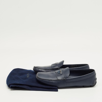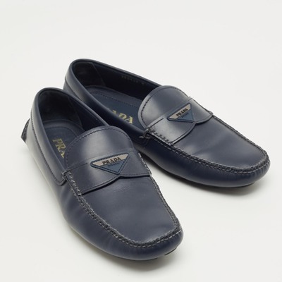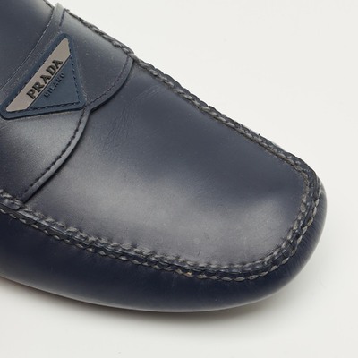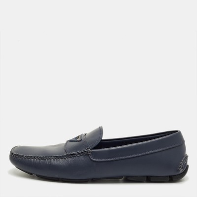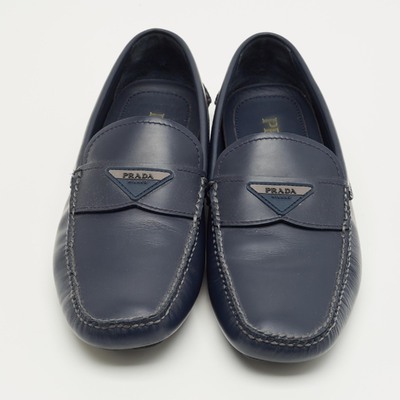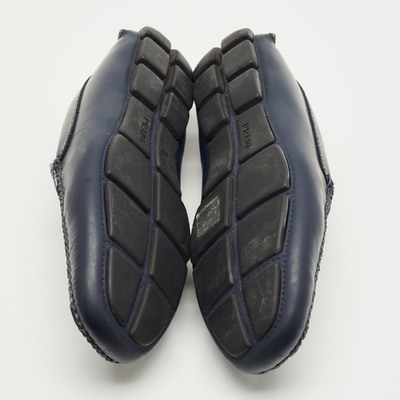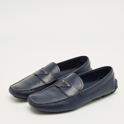 Prada Navy Blue Leather Driver Loafers Size 41 1228376 (lpn31051084)