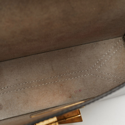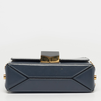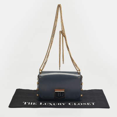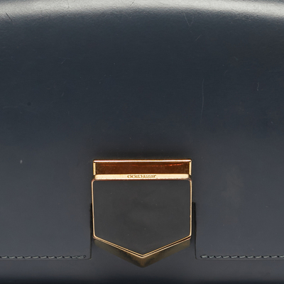 Crafted in smooth blue leather, the Jimmy Choo Lockett City bag captures modern elegance with its signature push lock closure and polished accents. Its structured silhouette and refined detailing make it perfect for both daywear and evening outings. A chic blend of sophistication and edge.