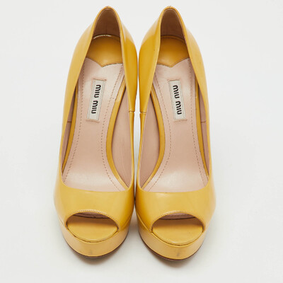 Miu Miu Yellow Patent Leather Peep Toe Platform Pumps Size 38 1227394 (жёлтый, lpn31051202)
