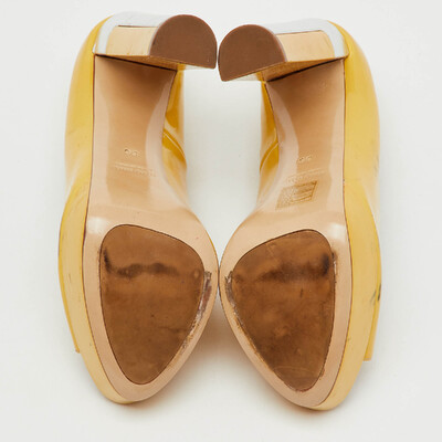 Miu Miu Yellow Patent Leather Peep Toe Platform Pumps Size 38 1227394 - 1