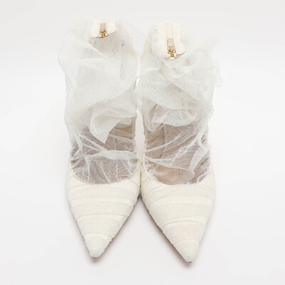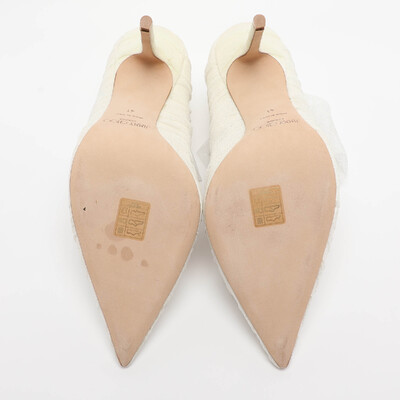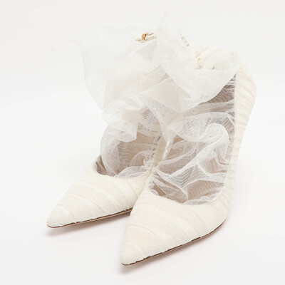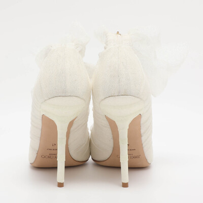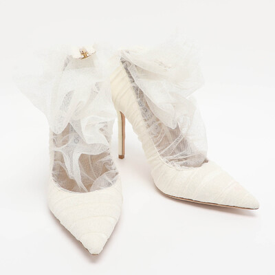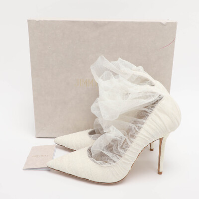 Jimmy Choo’s Lavish pumps epitomize ethereal refinement. Crafted in delicate lace and mesh, they showcase a romantic silhouette with a pointed toe and slender heel. Perfect for bridal or evening occasions, they evoke the house’s signature femininity and poise.