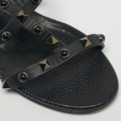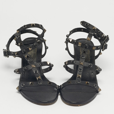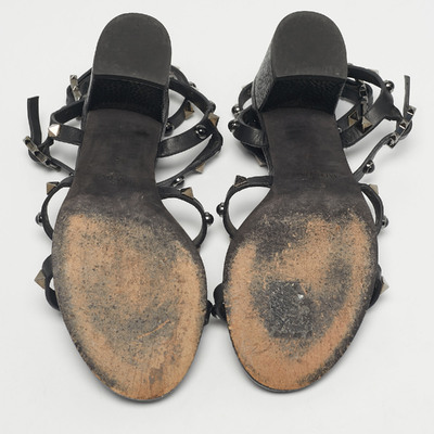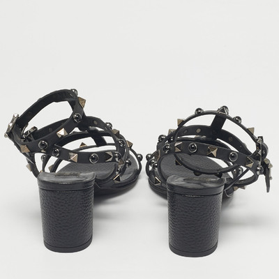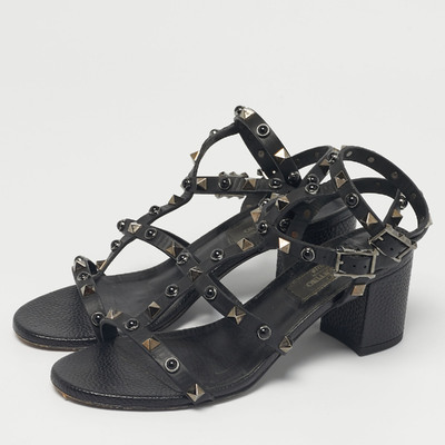 Valentino’s black leather Rockstud sandals feature the label’s signature studded straps and a sturdy block heel. The ankle strap design offers a secure fit, while the subtle shine of the studs adds a hint of luxury. Easy to pair with everything from denim to dresses.