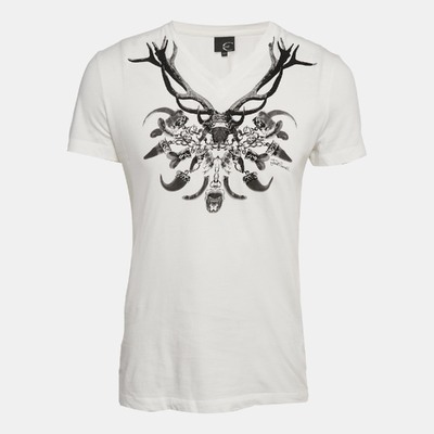 Just Cavalli White Printed Jersey V-Neck T-Shirt L 1225031 - 1