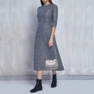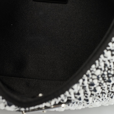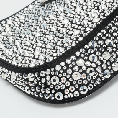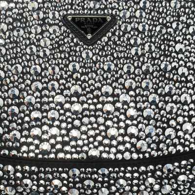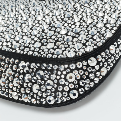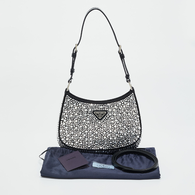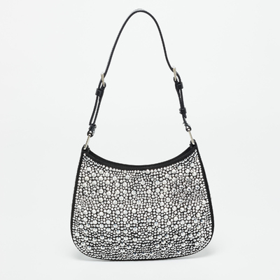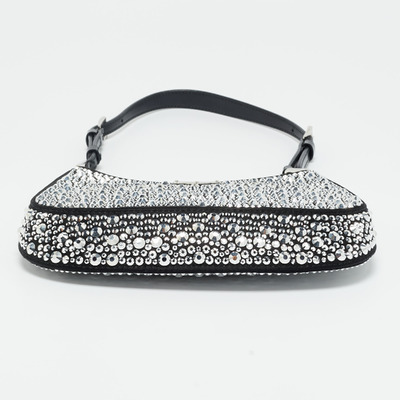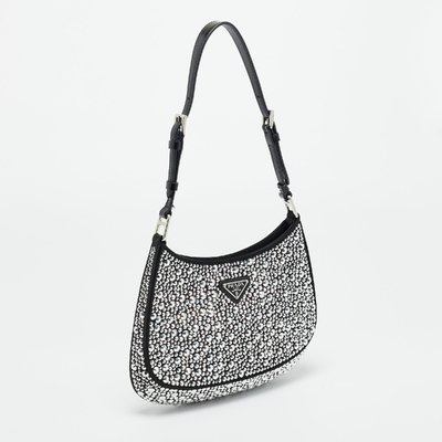 Prada elevates the iconic Cleo silhouette in black satin, embellished with crystals for dazzling impact. Sleek and contemporary, the hobo design reflects the brand’s mastery of minimalism infused with bold glamour. Both collectible and practical, it epitomizes Prada’s ability to reinvent classics for the modern wardrobe.