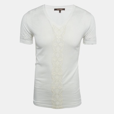Roberto Cavalli White Embroidered Jersey V-Neck T-Shirt S 1225029 - 1