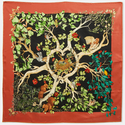Hermes Orange/Black Au Coeur des Bois Silk Scarf 1226187 - 1 small Hermes Orange/Black Au Coeur des Bois Silk Scarf 1226187 - 2 small Hermes Orange/Black Au Coeur des Bois Silk Scarf 1226187 - 3 small Hermes Orange/Black Au Coeur des Bois Silk Scarf 1226187 - 4 small