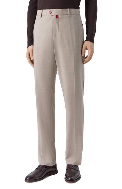 Шерстяные брюки Kiton ufpperk0127h06 (бежевый, lpn31054115)