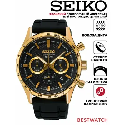 Кварцевый хронограф. Водостойкость WR 100. Часы, минуты, секунды. Индикация даты. Тахиметр. Стрелки и метки с люминесцентным покрытием. Циферблат с часовыми индексами в виде штрихов. Корпус выполнен из нержавеющей стали с IP покрытием. Размеры корпуса 50 мм х 43 мм х 12 мм. Устойчивое к возникновению мелких механических повреждений стекло Hardlex. Силиконовый ремешок.
