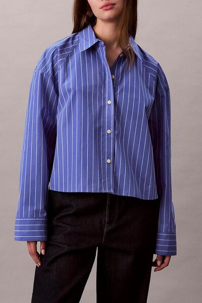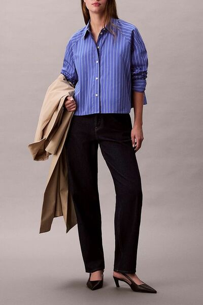 Рубашка хлопковая укороченного кроя Calvin Klein Jeans 7675498 (синий, lpn31055126)