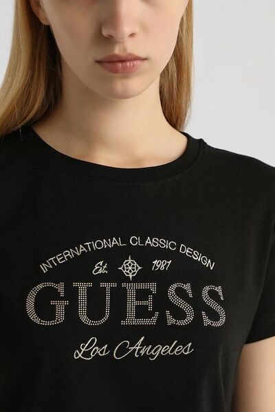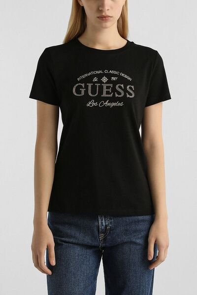Футболка хлопковая с логотипом Guess 7689244 (чёрный, lpn31055144)
