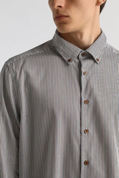 Рубашка хлопковая в полоску Bugatti 8166318 (коричневый, lpn31055403)