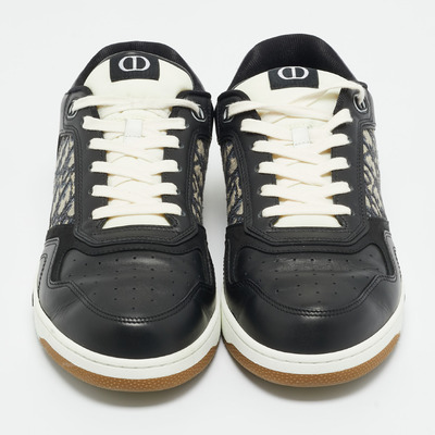 These Dior B27 sneakers feature black jacquard canvas with signature Dior Oblique motifs and smooth leather accents. The lace up style and contemporary silhouette exude refined streetwear appeal. Perfect for completing modern luxury looks with subtle branding.
