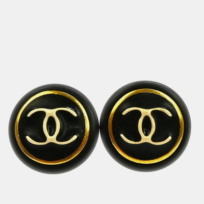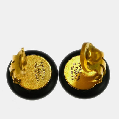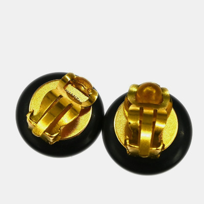 Chanel Button Earrings Clip-On Black Gold 1229515 (чёрный, lpn31056843)