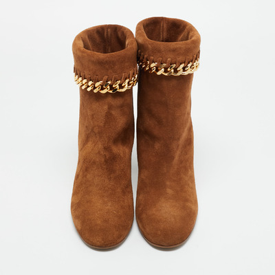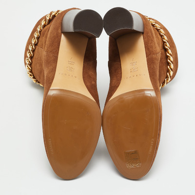 Casadei infuses everyday essentials with sculptural allure in these brown suede boots. The supple texture is elevated with chain detailing that curves elegantly around the ankle. Set on block heels, they strike the perfect balance between sophistication and practicality — ideal for pairing with jeans or fluid midi skirts.