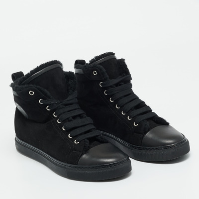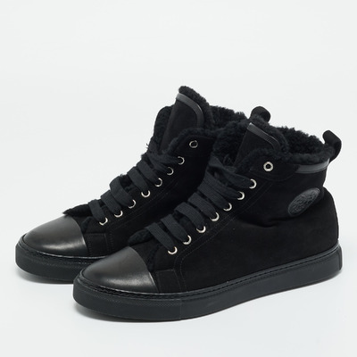 Hermes Black Leather and Suede Jimmy High Top Sneakers Size 41 1229600 (чёрный, lpn31056875)