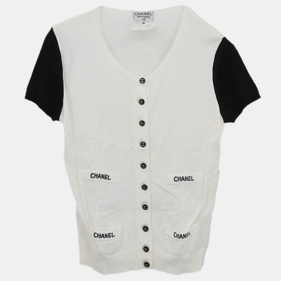 Chanel Short Sleeve Cardigan White #36 1229570 (чёрный, lpn31056879)