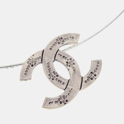 Silver tone Chanel necklace featuring a classic CC logo pendant from the 2003 Spring collection. Simple and easy to pair with any outfit.